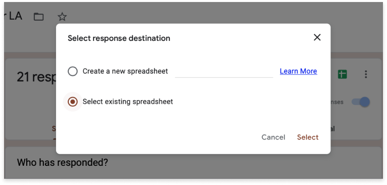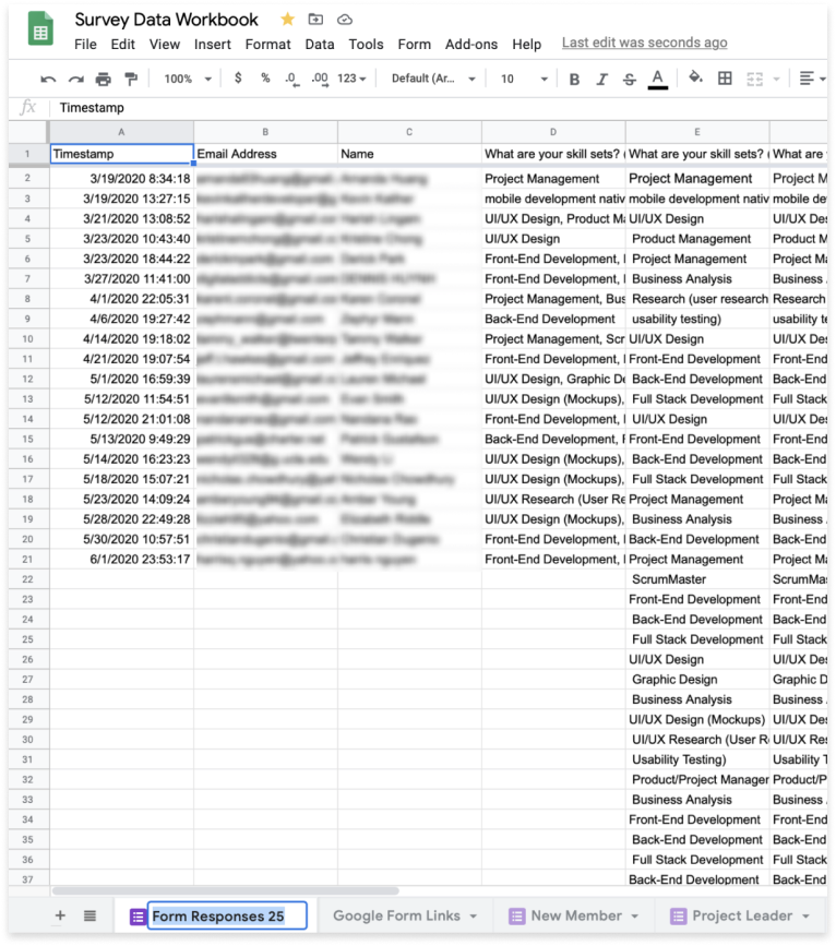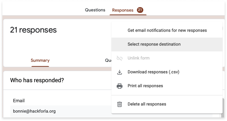 Once you have set the response destination for your Google Form to your desired Google Sheets File, your data will be visible in a new worksheet.