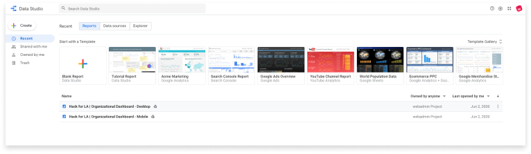 Once you are logged into Google Data Studio, create a Blank Report, or choose an existing report