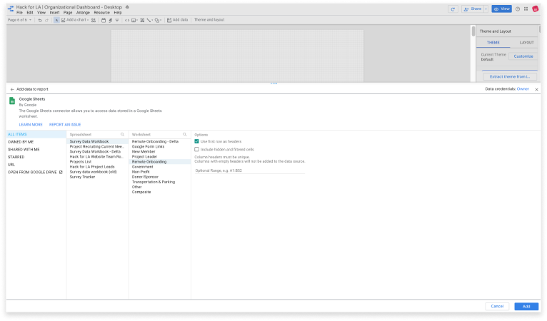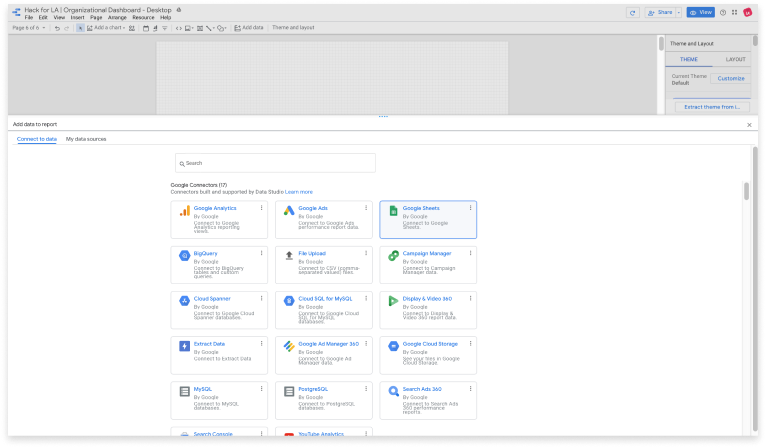 (2) Choose your desired Connector from the ‘Connect to data’ window that opens. In our example, we use Google Sheets.