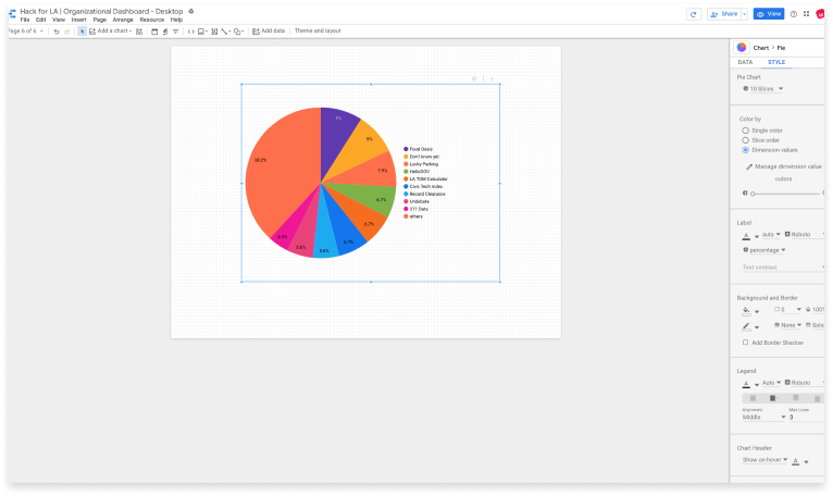 Select the appropriate dimension for your chart. In Google Data Studio, dimension refers to a selected column title in your Worksheet.
