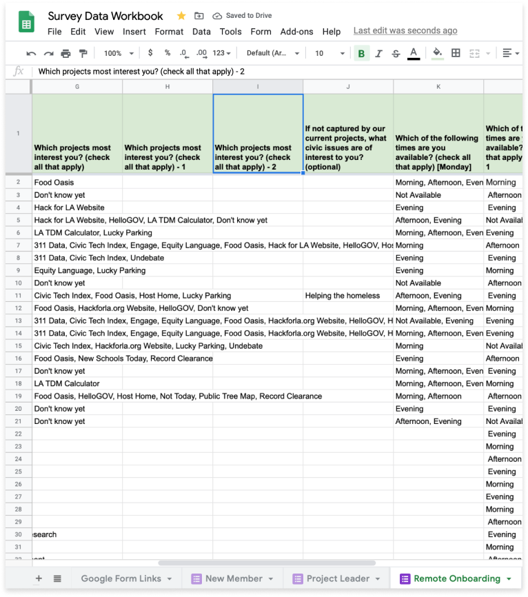 (3) Copy and paste the name of the column for your cleaned data. In our example this is “Which projects most interest you? (check all that apply) - 2”