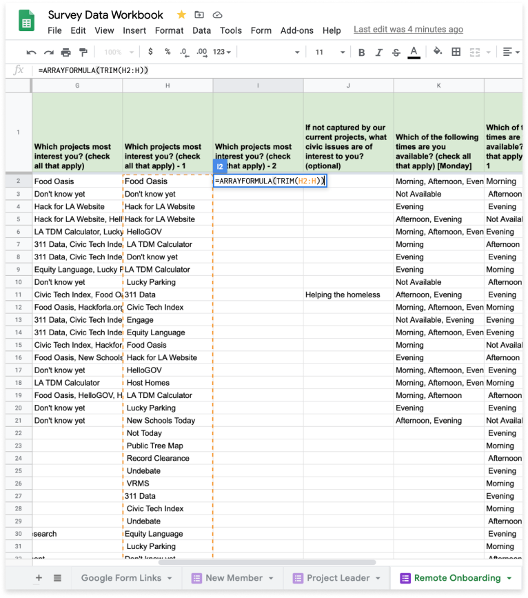 Clean the data exported by your Google Form to enable proper manipulation in Google Data Studio